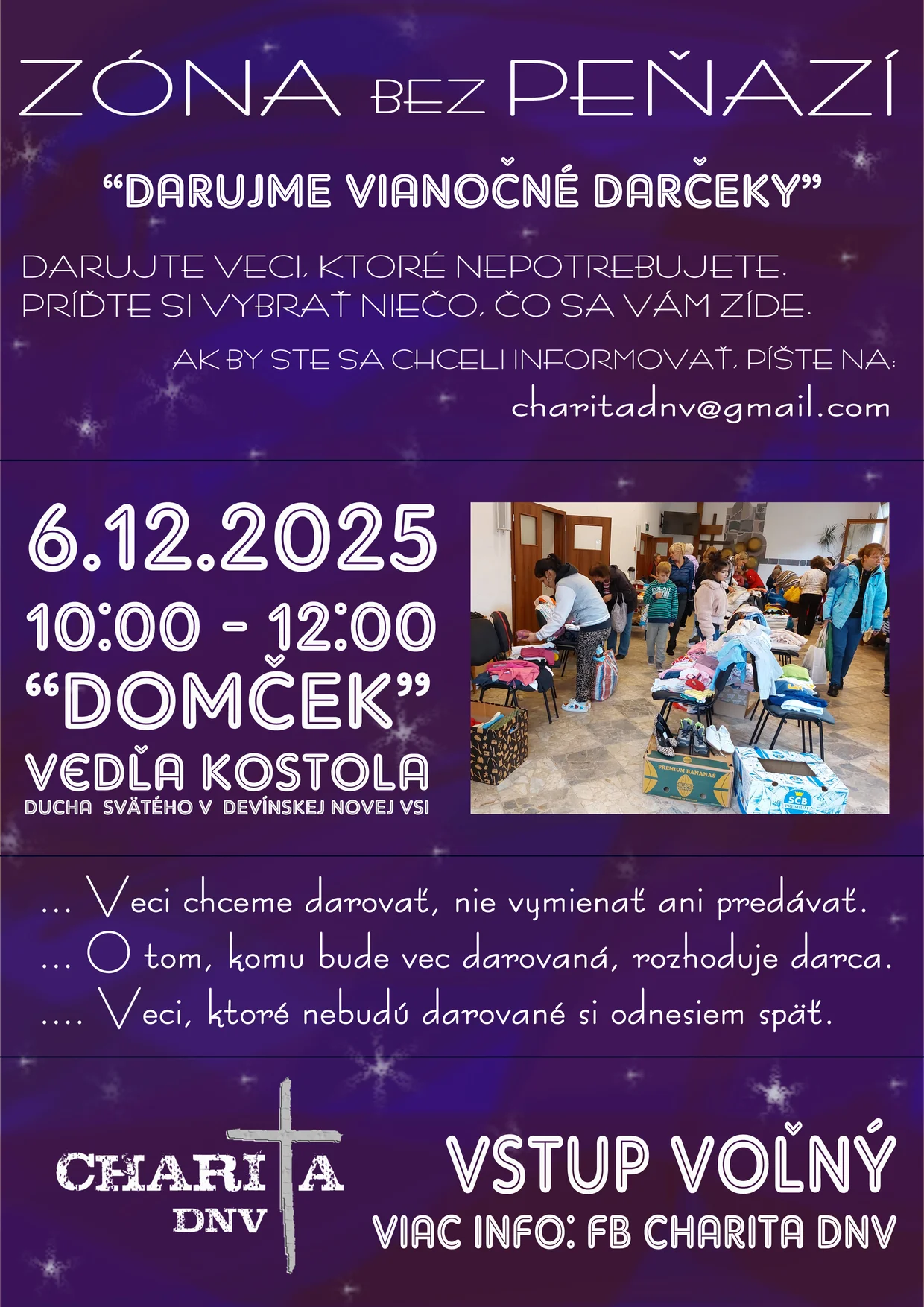 Pozývame všetkých na Zónu bez peňazí, ktorá sa uskutoční 6.12. v Domčeku pri kostole.